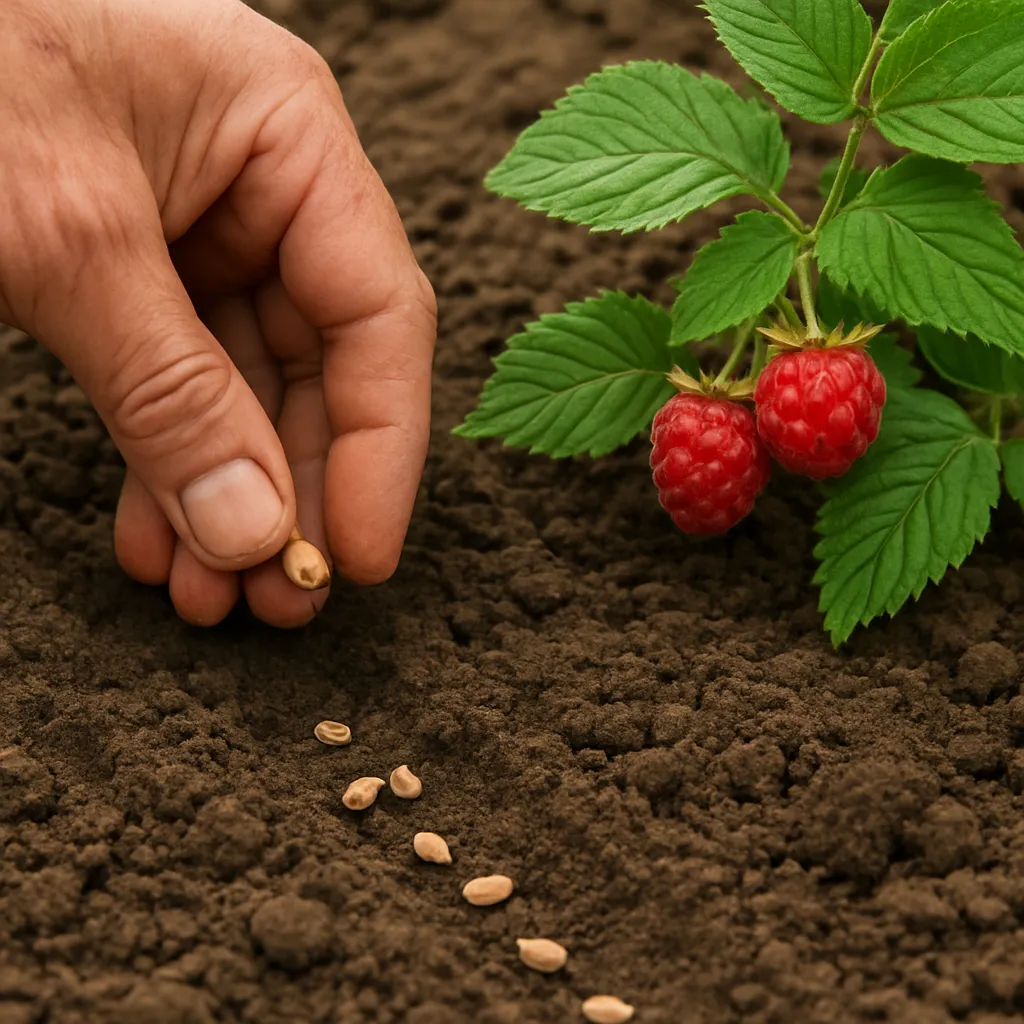 • siej płytko — nasiona malin potrzebują światła lub minimalnego przykrycia (0–3 mm),